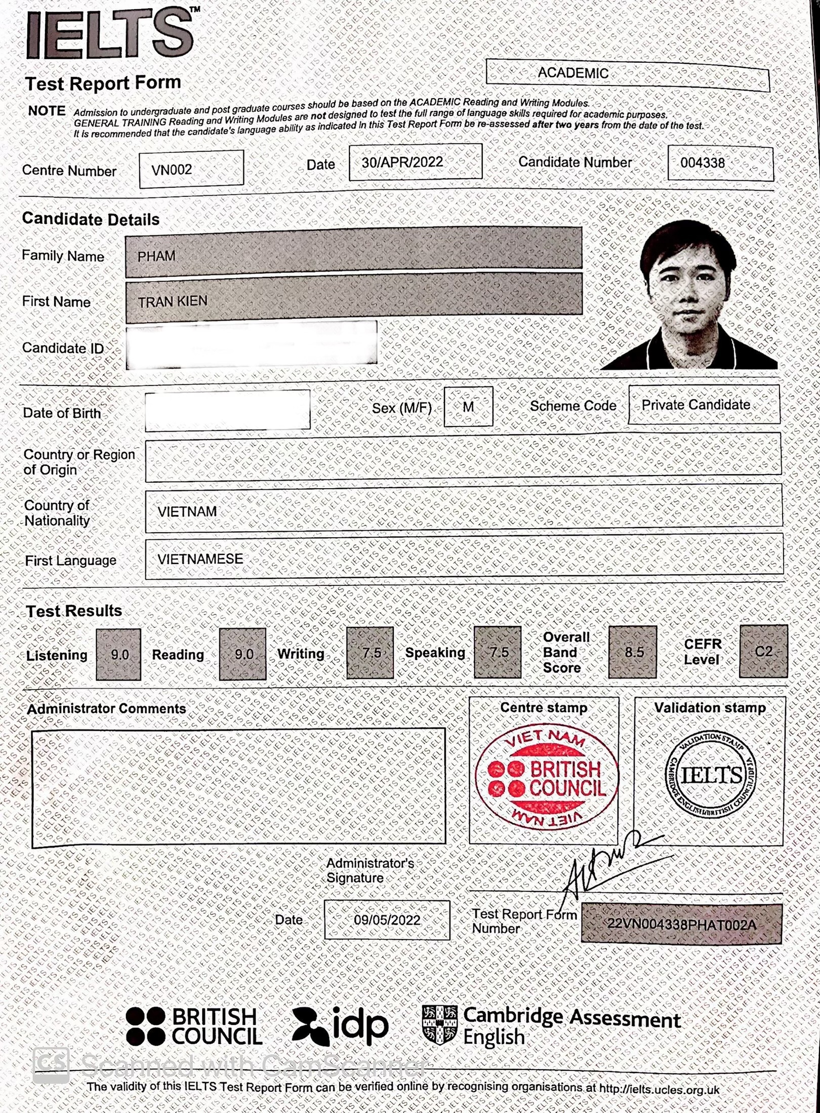 đạt 6.5-7.5 IELTS và đang sinh sống tại nhiều nơi trên thế giới như Đức, Mỹ, Úc…